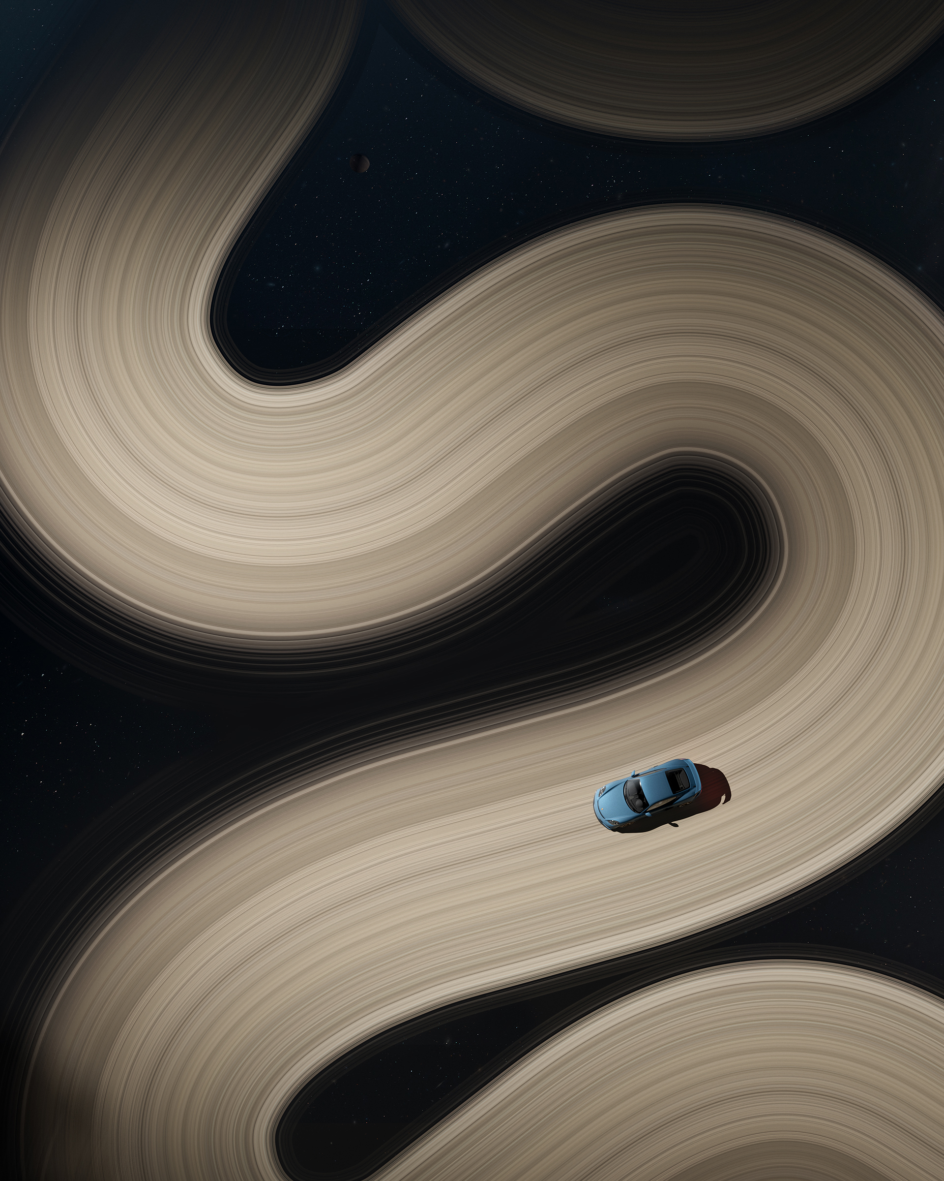 exploring the intersection between the tangible and the intangible. these artworks are nothing more than an attempt to merge the aesthetics of space with the automotive world. here, you find the rings of Saturn standing as a poetic environment for the car, resulting in unique imagery where both elements are balanced.